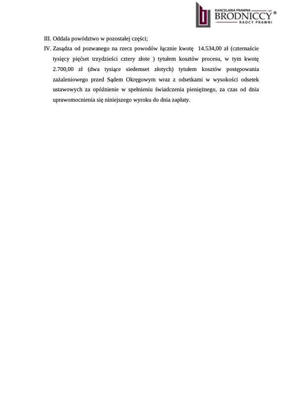 - zasądził koszty procesu w kwocie 14 534 zł.